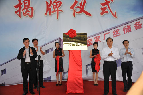 9月22日,商务部市场运行司司长、国家茧丝绸办主任邸建凯同志,商务部市场运行司副巡视员、国家茧丝绸办副主任李朝胜同志出席吴江新建国家厂丝储备仓库揭牌仪式,并对新仓库进行考察。江苏省商务厅副厅长潘宪生等领导出席揭牌仪式。